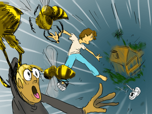 One countdown later, there’s about six of us overturning couches, yanking open doors, and generally trashing the place, but try as we might, we simply cannot locate our friends’ slippery, fish-like bodies. I know the house inside and out, but after checking the weird bonus closet inside the bedroom closet, the secret basement behind the bookshelf, and that strange, snowy kingdom in the wardrobe, I’m befuddled. Maybe the bees had returned to exact their revenge. Blood for blood. Thorax for thorax.