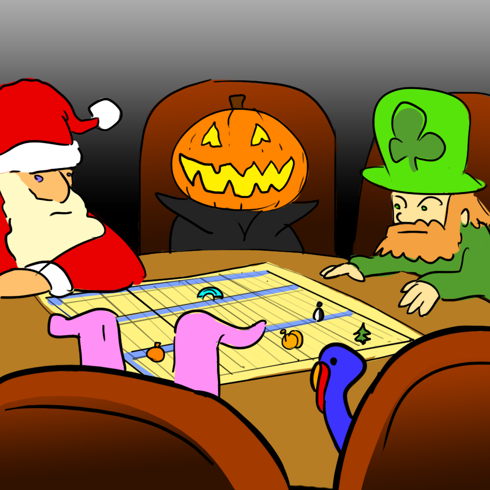 “Halloween shall fall on the least fun day of all, a Tuesday!” they cry. “And when it ought to land on a Saturday, we’ll ensure there’s a leap year, bumping it to Sunday and robbing college students everywhere of their scantily-clad celebration!”